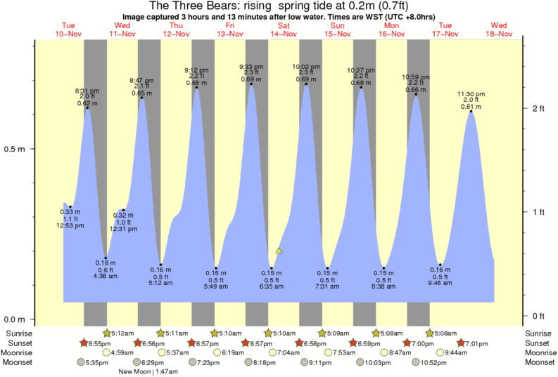 Image captured 3 hours and 13 minutes after low water (rising spring tide). Tide height was 0.2m (0.7 ft). Range 0.70m (2.3 ft). Toggle tide graph