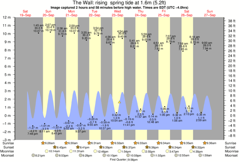 Image captured 2 hours and 58 minutes before high water (rising spring tide). Tide height was 1.6m (5.2 ft). Range 12.50m (41.0 ft). Toggle tide graph