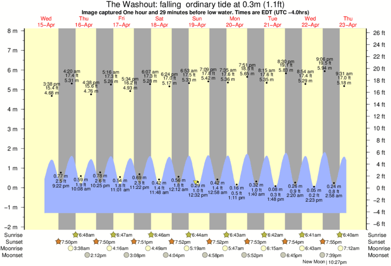 Image captured One hour and 29 minutes before low water (falling ordinary tide). Tide height was 0.3m (1.1 ft). Range 8.56m (28.1 ft). Toggle tide graph