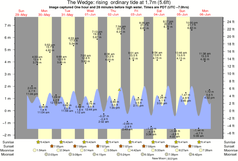 Forecast wind and swell just offshore from The Wedge around the time the photo was taken