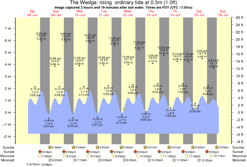 Image captured 2 hours and 19 minutes after low water (rising ordinary tide). Tide height was 0.3m (1.0 ft). Range 8.80m (28.9 ft). Toggle tide graph