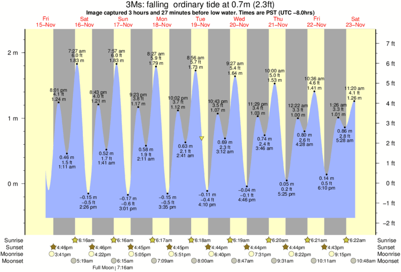 Image captured 3 hours and 27 minutes before low water (falling ordinary tide). Tide height was 0.7m (2.3 ft). Range 2.62m (8.6 ft). Toggle tide graph