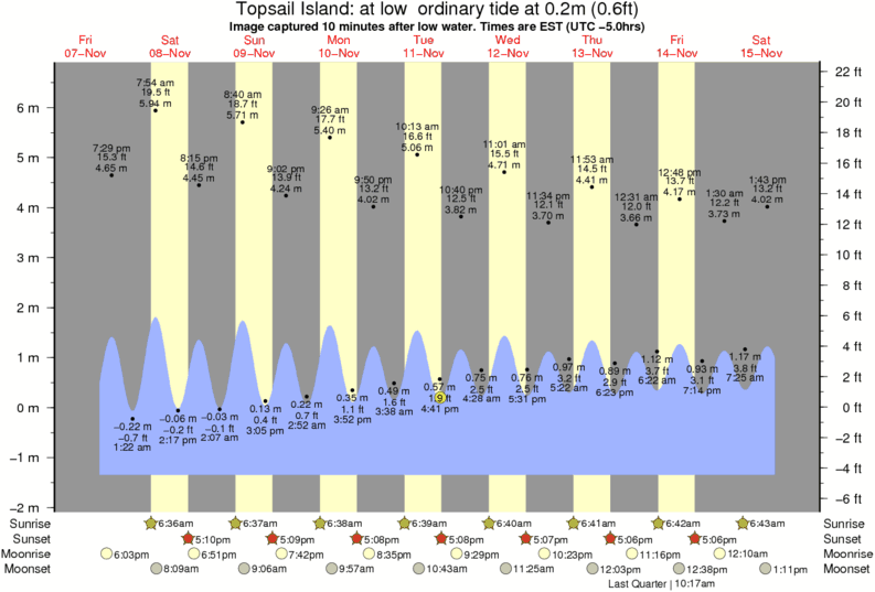 Image captured 10 minutes after low water (at low ordinary tide). Tide height was 0.2m (0.6 ft). Range 7.50m (24.6 ft). Toggle tide graph