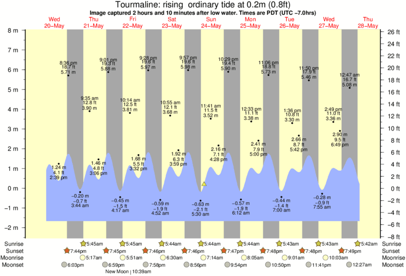 Image captured 2 hours and 10 minutes after low water (rising ordinary tide). Tide height was 0.2m (0.8 ft). Range 8.82m (28.9 ft). Toggle tide graph