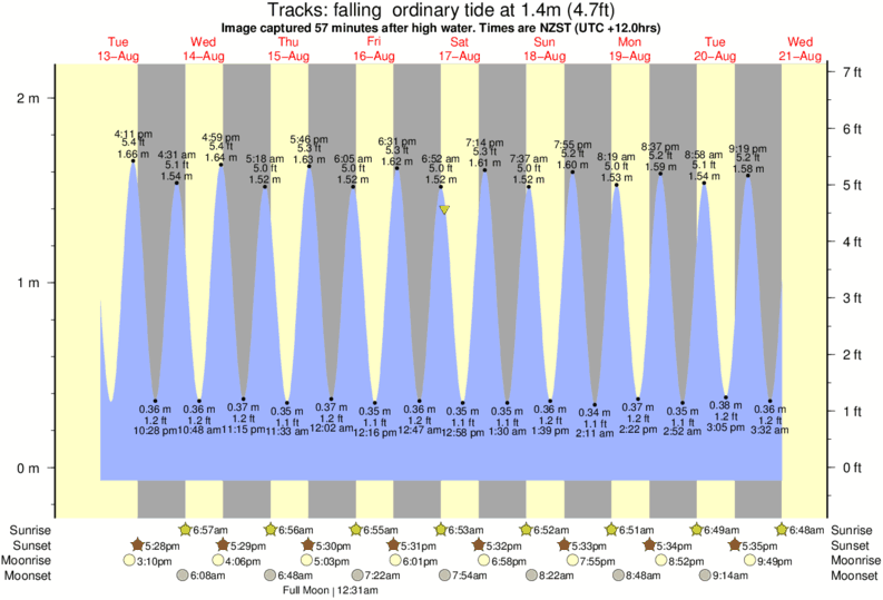Image captured 57 minutes after high water (falling ordinary tide). Tide height was 1.4m (4.7 ft). Range 2.05m (6.7 ft). Toggle tide graph