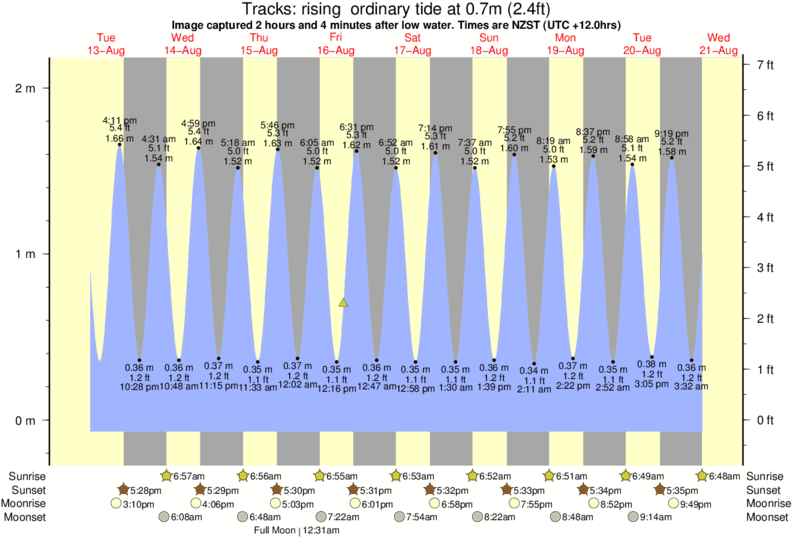 Image captured 2 hours and 4 minutes after low water (rising ordinary tide). Tide height was 0.7m (2.4 ft). Range 2.05m (6.7 ft). Toggle tide graph