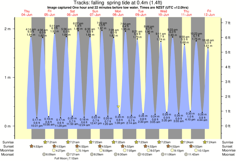 Image captured One hour and 22 minutes before low water (falling spring tide). Tide height was 0.4m (1.4 ft). Range 2.09m (6.9 ft). Toggle tide graph