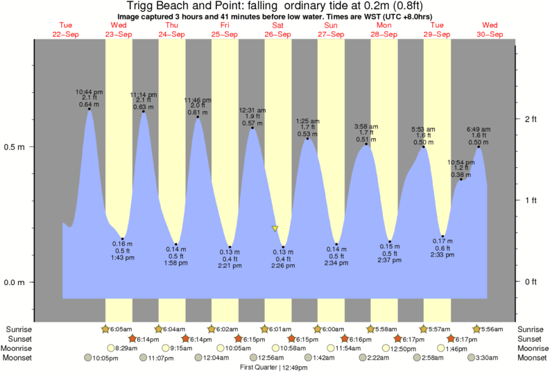 Forecast wind and swell just offshore from Trigg Beach around the time the photo was taken