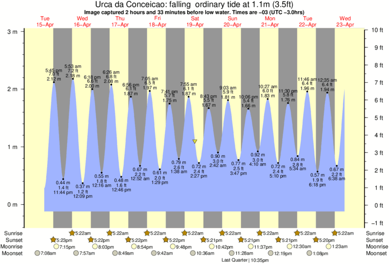 Image captured 2 hours and 33 minutes before low water (falling ordinary tide). Tide height was 1.1m (3.5 ft). Range 2.89m (9.5 ft). Toggle tide graph