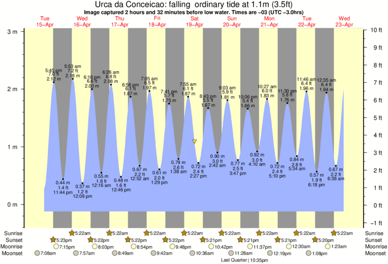 Image captured 2 hours and 32 minutes before low water (falling ordinary tide). Tide height was 1.1m (3.5 ft). Range 2.89m (9.5 ft). Toggle tide graph