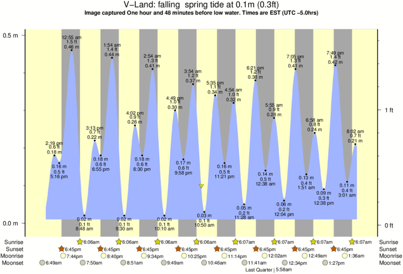 Image captured One hour and 51 minutes before low water (falling spring tide). Tide height was 0.1m (0.3 ft). Range 0.46m (1.5 ft). Toggle tide graph