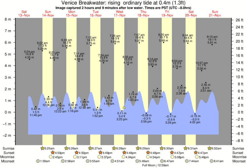 Forecast wind and swell just offshore from Venice Breakwater around the time the photo was taken
