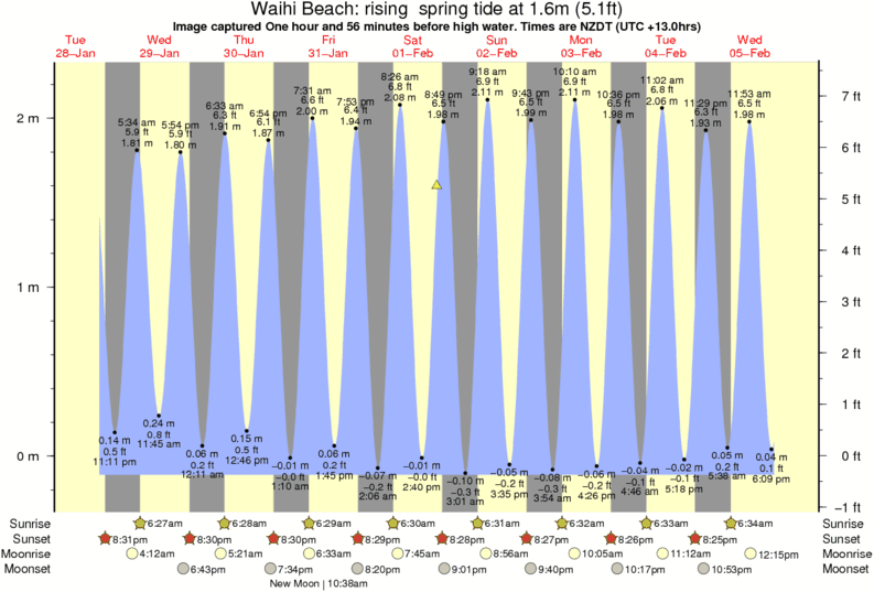 Forecast wind and swell just offshore from Waihi Beach around the time the photo was taken