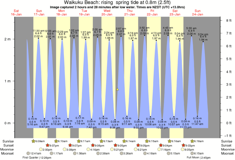 Image captured 2 hours and 28 minutes after low water (rising spring tide). Tide height was 0.8m (2.5 ft). Range 2.41m (7.9 ft). Toggle tide graph