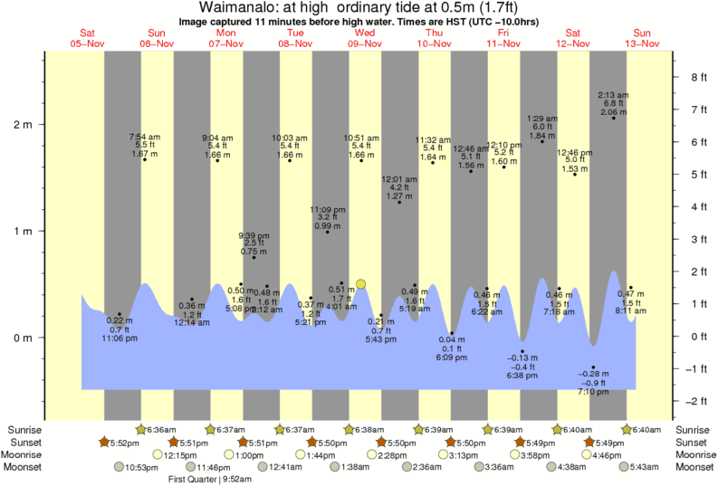 Forecast wind and swell just offshore from Waimanalo around the time the photo was taken
