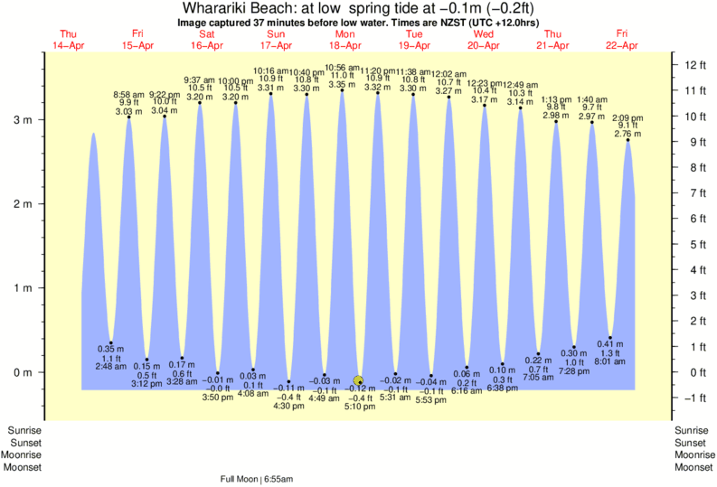Image captured 37 minutes before low water (at low spring tide). Tide height was -0.1m (-0.2 ft). Range 3.65m (12.0 ft). Toggle tide graph