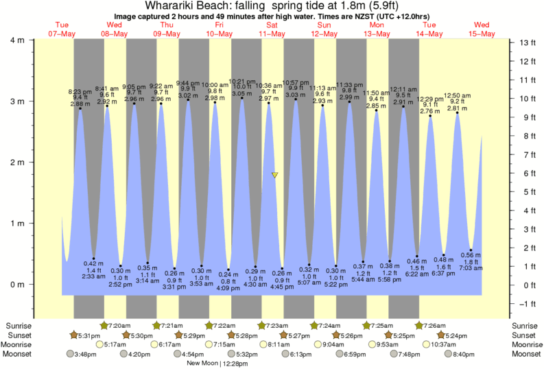 Image captured 2 hours and 49 minutes after high water (falling spring tide). Tide height was 1.8m (5.9 ft). Range 3.82m (12.5 ft). Toggle tide graph