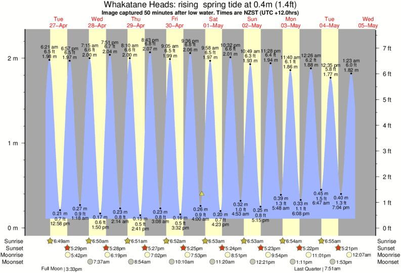 Forecast wind and swell just offshore from Whakatane Heads around the time the photo was taken