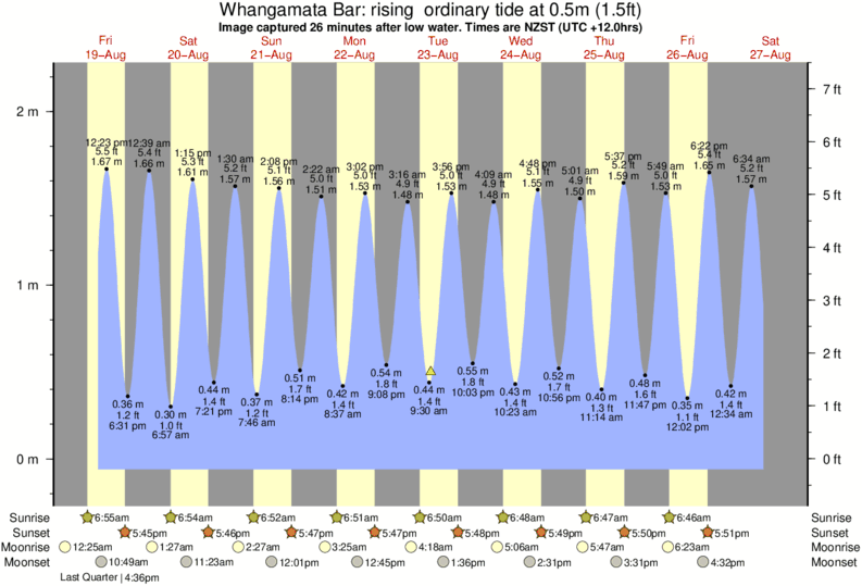 Forecast wind and swell just offshore from Whangamata Bar around the time the photo was taken