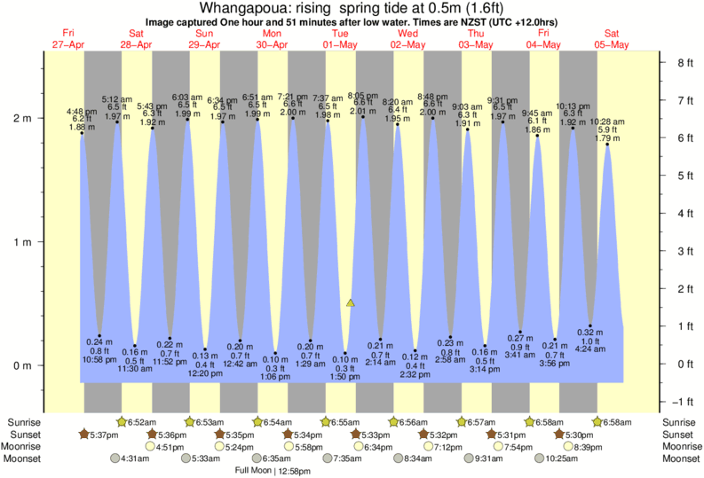 Forecast wind and swell just offshore from Whangapoua around the time the photo was taken