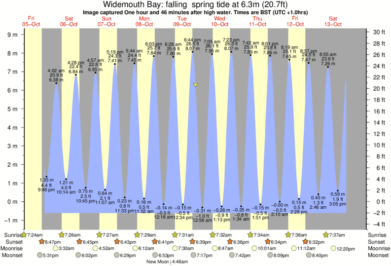 Image captured One hour and 46 minutes after high water (falling spring tide). Tide height was 6.3m (20.7 ft). Range 9.04m (29.7 ft). Toggle tide graph