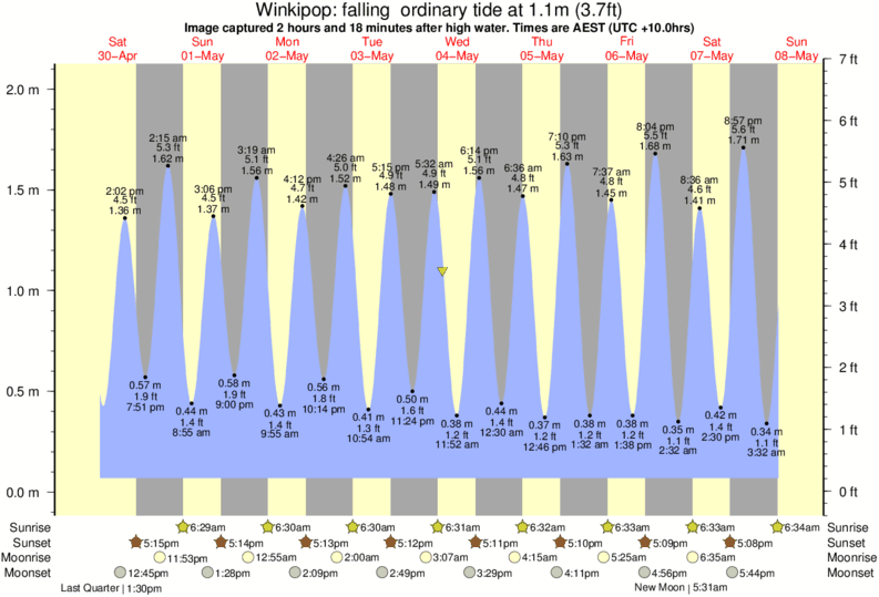 Image captured 2 hours and 18 minutes after high water (falling ordinary tide). Tide height was 1.1m (3.7 ft). Range 1.87m (6.1 ft). Toggle tide graph