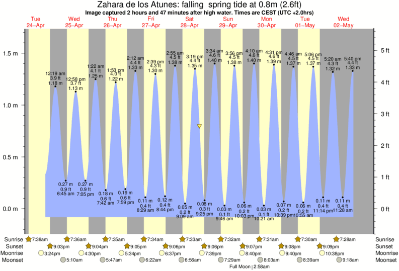 Image captured 2 hours and 48 minutes after high water (falling spring tide). Tide height was 0.8m (2.6 ft). Range 1.65m (5.4 ft). Toggle tide graph