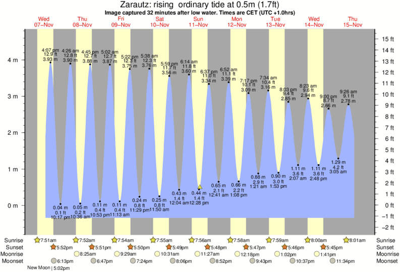 Image captured 32 minutes after low water (rising ordinary tide). Tide height was 0.5m (1.7 ft). Range 4.72m (15.5 ft). Toggle tide graph