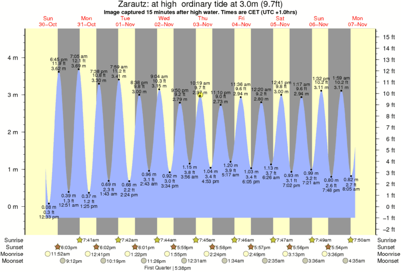 Forecast wind and swell just offshore from Zarautz around the time the photo was taken